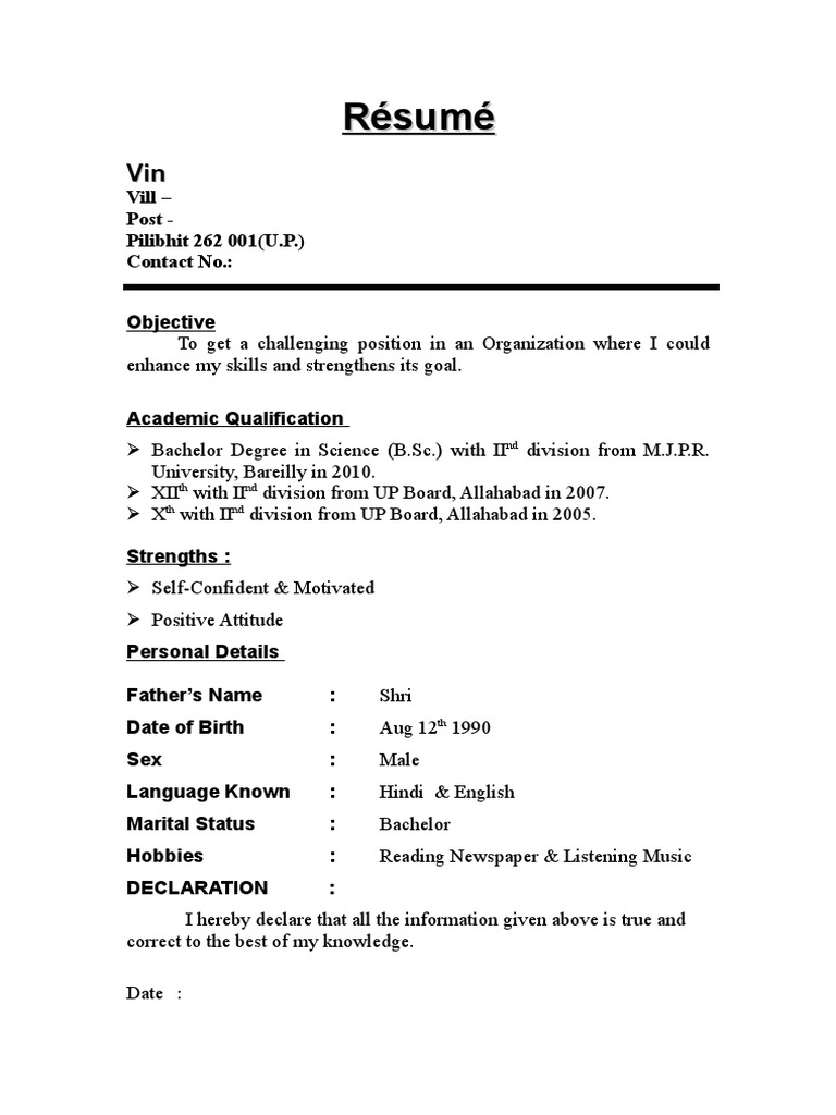 The declaration in the resume must include the name of the writer and the date. A declaration in resume is a formal statement made to acknowledge the facts provided are accurate and reliable to the best of his belief. It is typically placed at the end of a resume as an affirmation that all the information. Download best resume formats in word and use professional quality fresher resume templates for free. Since, the declaration is used to say that the information in your resume is genuine.